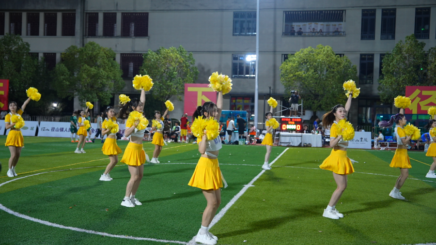 随着裁判一声哨响,比赛正式拉开战幕。上半场比赛,双方陷入激烈的中场争夺。径山队展现出严密的防守体系,后防线保持高度专注,多次化解对手的进攻威胁。整个上半场,两队攻防转换节奏飞快,虽比分维持在0:0平,但精彩的对抗让现场观众大呼过瘾。中场休息时间到,动感音乐响起,活力啦啦操队员们挥动彩球、踏着动感节拍闪亮登场。她们脸上洋溢的笑容与蓬勃的朝气,像一束光点燃了赛场每个角落,将现场气氛推向又一个高潮。
