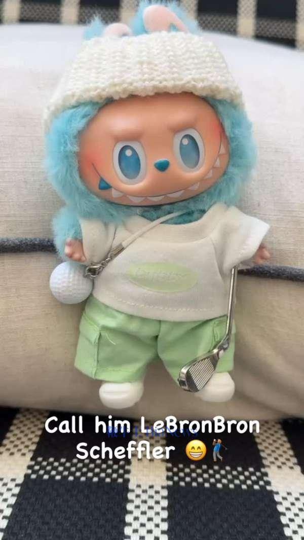 詹姆斯晒出了一个带有高尔夫装备的拉布布玩偶视频,配文:“叫他LeBronBron Scheffler”。